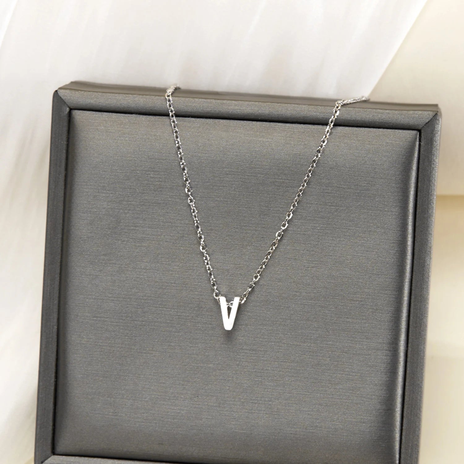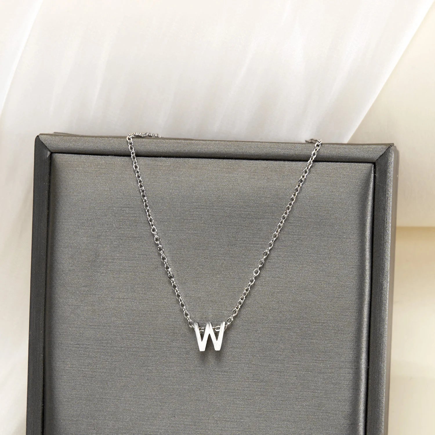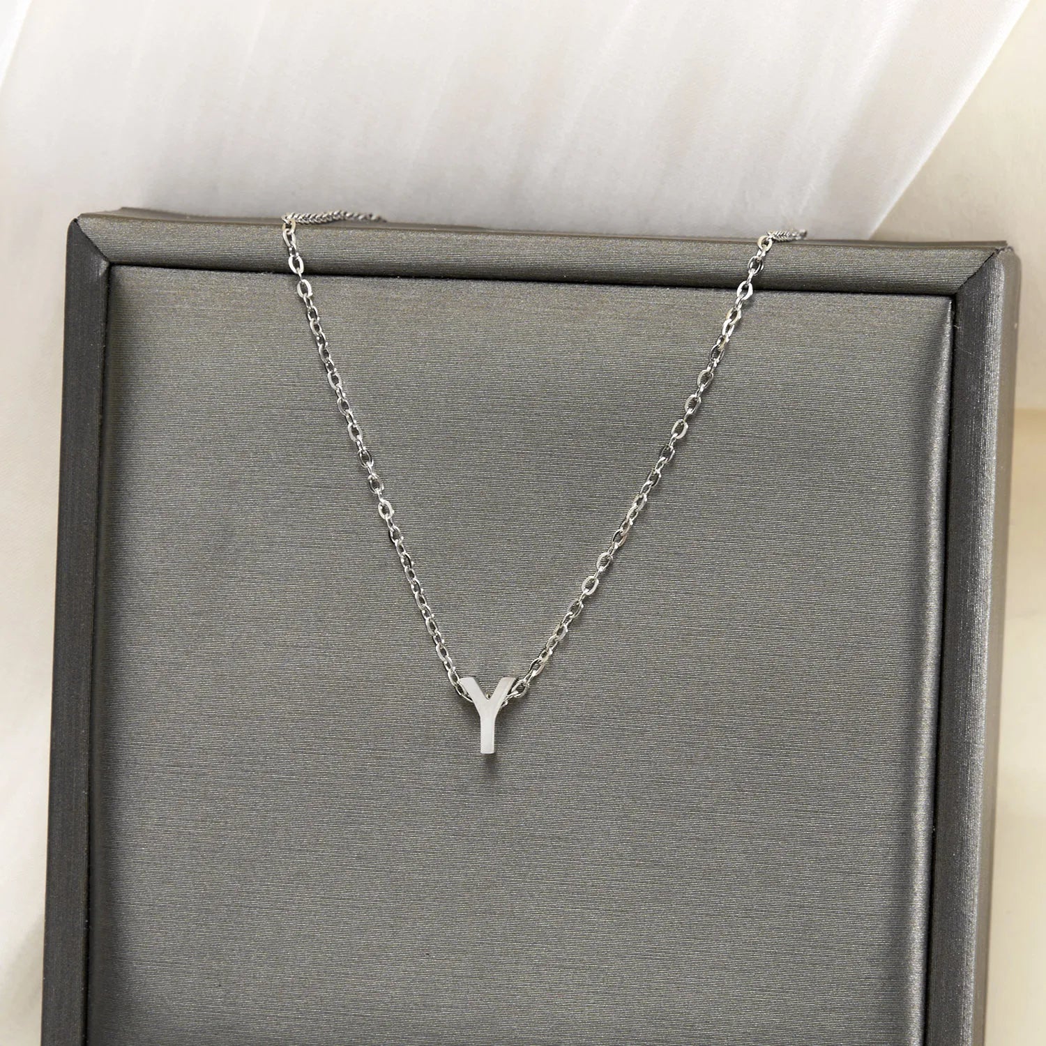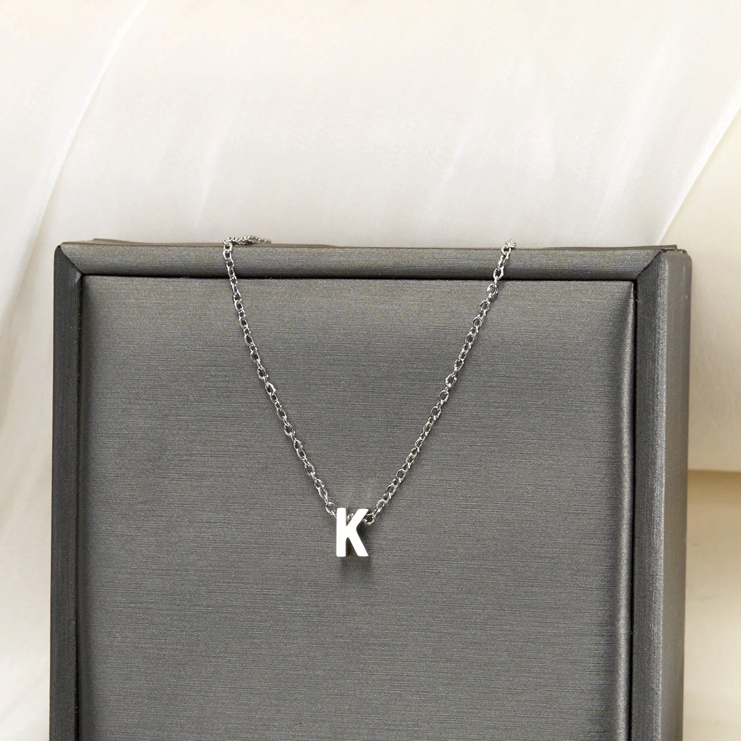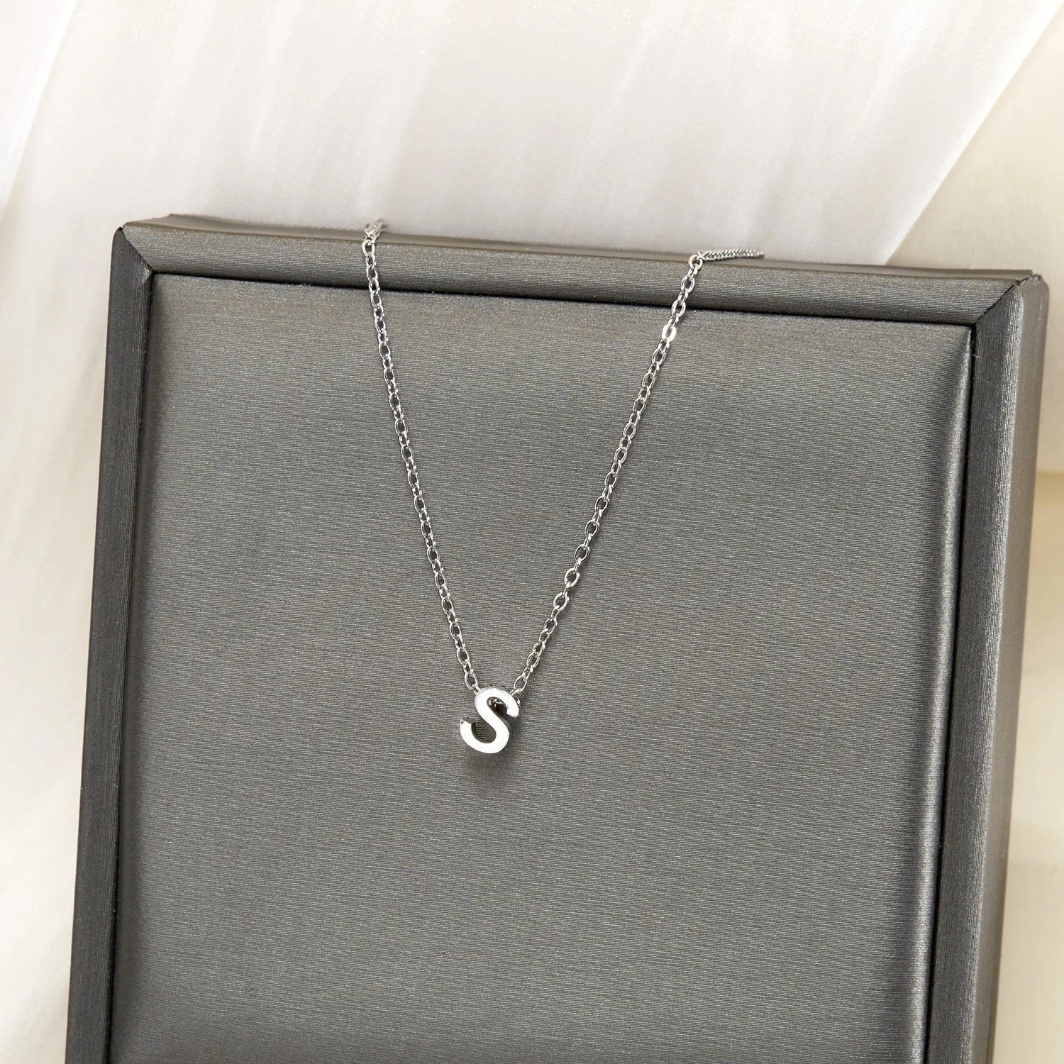 Silver Color Tiny A-Z Initial Letter Necklace for Women Stainless Steel 26 Alphabet Name Pendant Necklaces Jewelry Birthday Gift