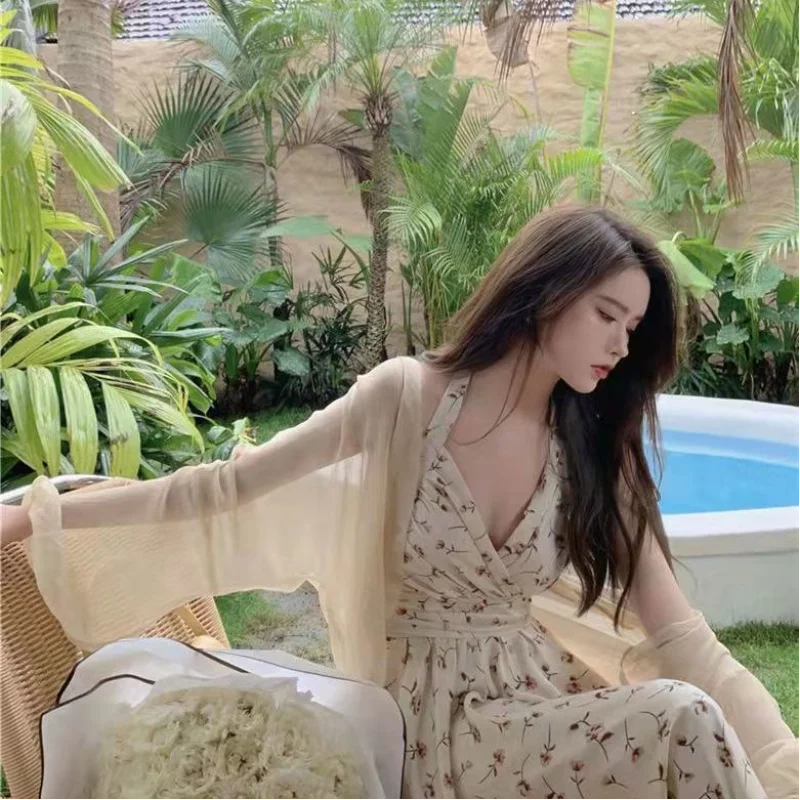 The Flower V-Neck Sling Dress Set combines elegant floral patterns with a flattering V-neck design for a sophisticated look. Crafted with attention to detail, this set offers a comfortable fit and versatile style suitable for various occasions. Its lightweight fabric and sling straps provide ease of movement and breathability, making it an expert choice for both casual and dressy settings.