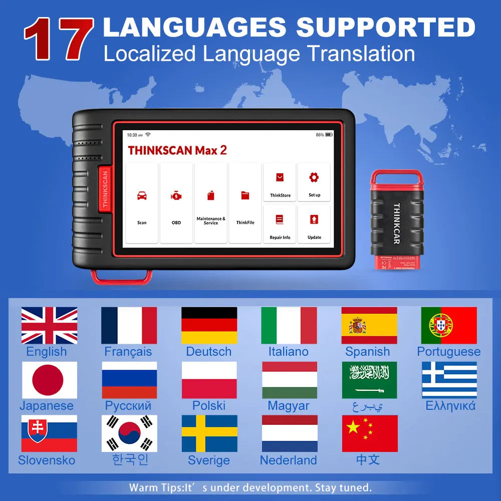 THINKCAR Thinkscan Max 2 Car Full System Diagnostic Tools TPM AF DPF IMMO 28 Reset ECU Coding Auto OBD OBD2 Scanner CANFD For GM