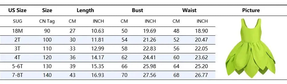 Transform your little one into a fairytale princess with our Tinkerbell dress! This green fairy costume is perfect for Halloween or birthday parties, and is designed for girls aged 4-6 years old. Let your child's imagination soar as they take on the role of Tinker Bell.