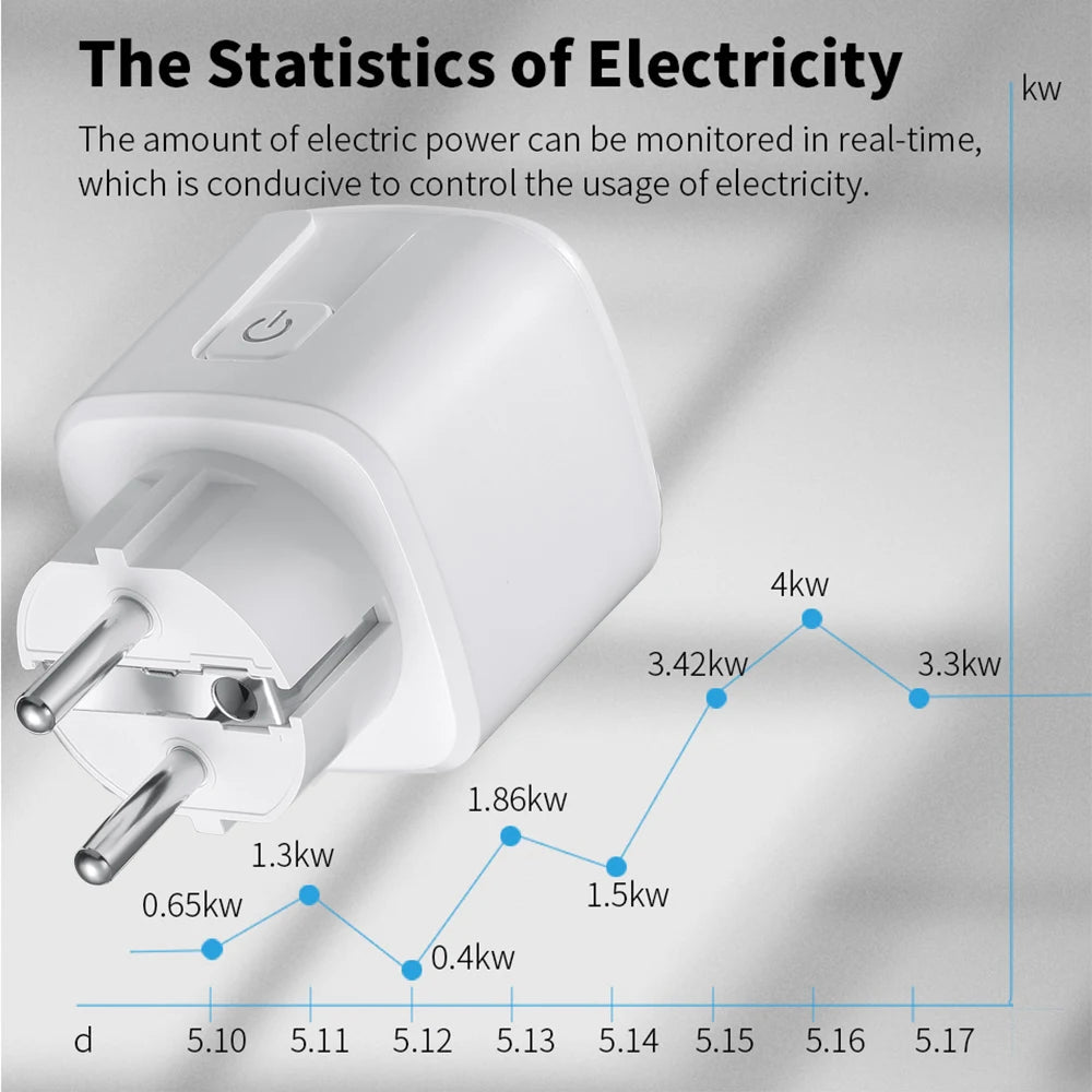 The Tuya Smart WiFi Plug supports 16A/20A current and up to 3680W power, making it ideal for high-demand appliances. Its built-in power meter allows precise energy monitoring, helping you manage consumption efficiently. With wireless remote control via the Tuya app and compatibility with Alexa, you can easily automate and voice-control your devices for enhanced convenience and smart home integration. Designed for EU outlets, this smart socket combines robust performance with seamless connectivity.
