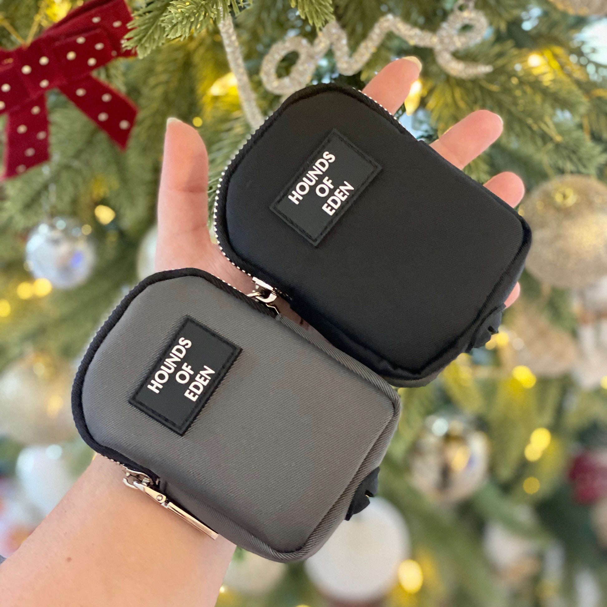 Matching small treat & poop bag dispensing pouch available separately, clips onto trousers/pockets and is perfect for small walks. Also clips onto our new shoulder straps.