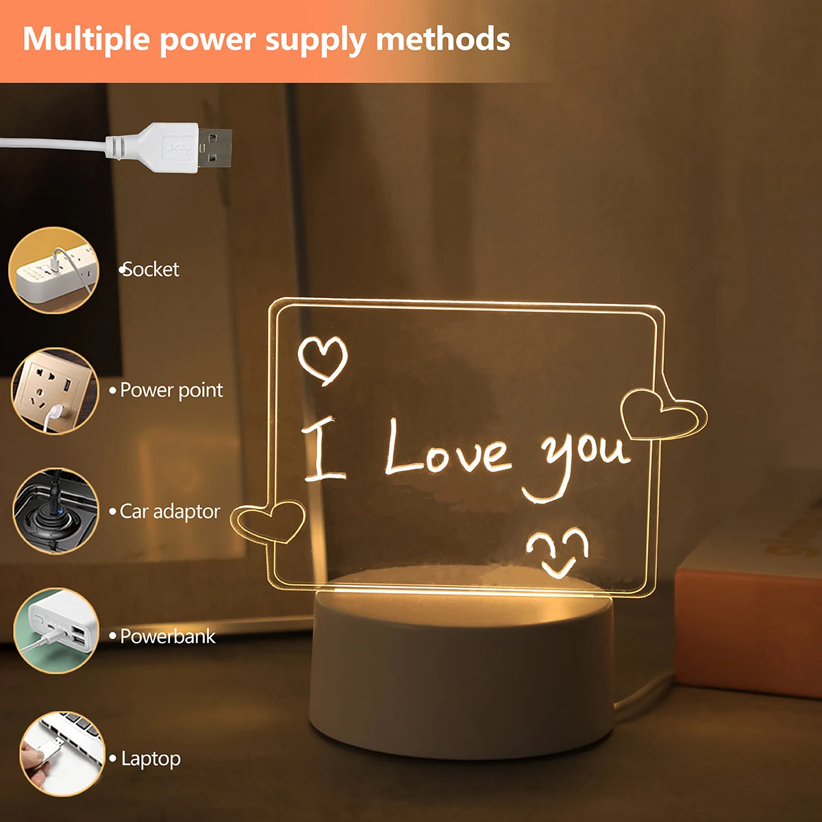 Combine functionality with sentiment using this innovative USB-powered luminous pen night light. Write personalised messages or drawings on the erasable surface, which illuminates beautifully in the dark—ideal for expressing affection or creating interactive bedroom ambiance. The 3D acrylic construction delivers a sophisticated aesthetic that complements Nordic minimalist interiors whilst serving as a memorable birthday or romantic gift. Simply plug into any USB port and watch your words glow softly throughout the night. Perfect for adding a personal touch to bedside tables, shelves, or event displays.
