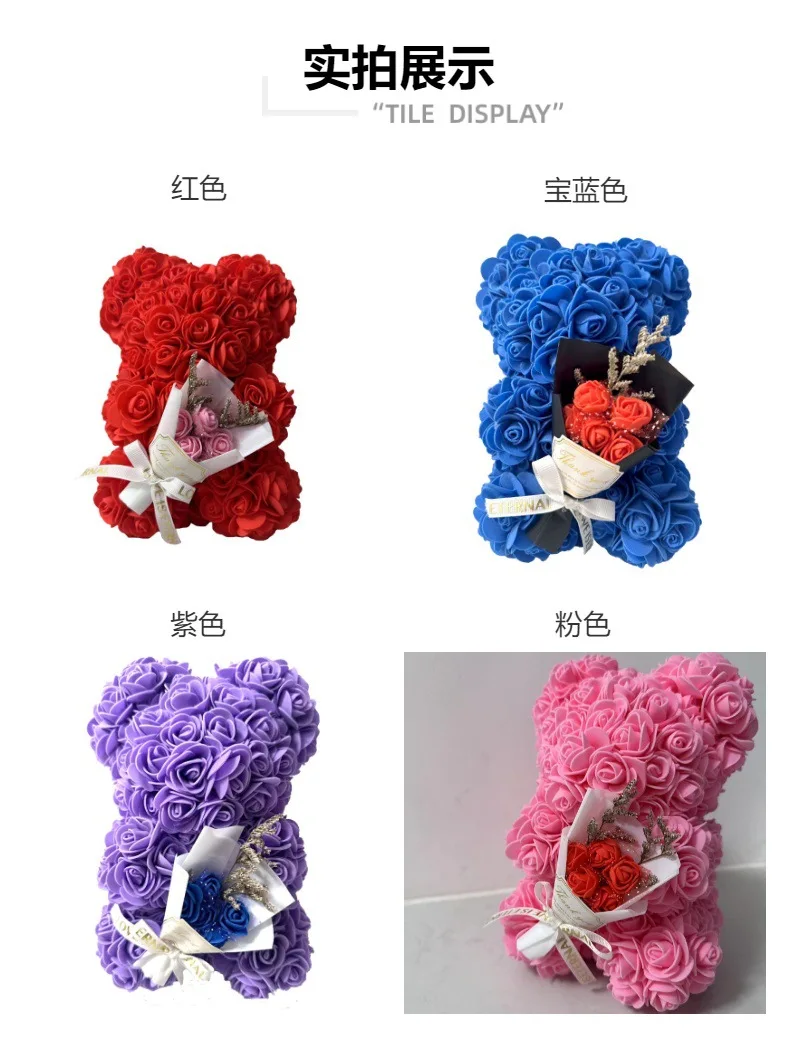 Valentines Day Gift 25cm Artificial Rose Bear With Box For Girl Friend Women Mother's Day Gift Brithday Present Wedding Party