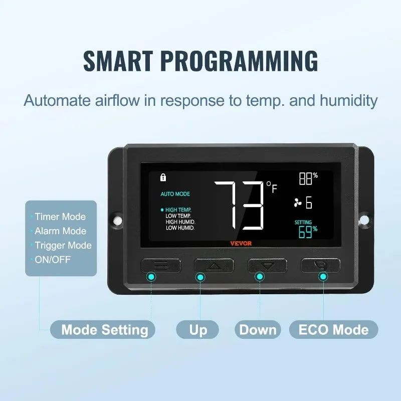 VEVOR 14'' Exhaust Fan with Temperature Humidity Controller, 1513 CFM, 10-Speed Adjustable Wall Mount Attic Fan, Ventilation