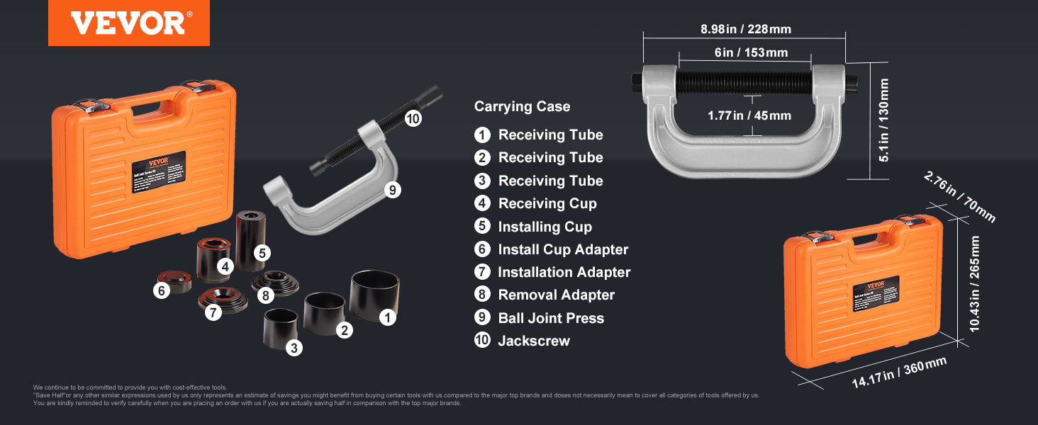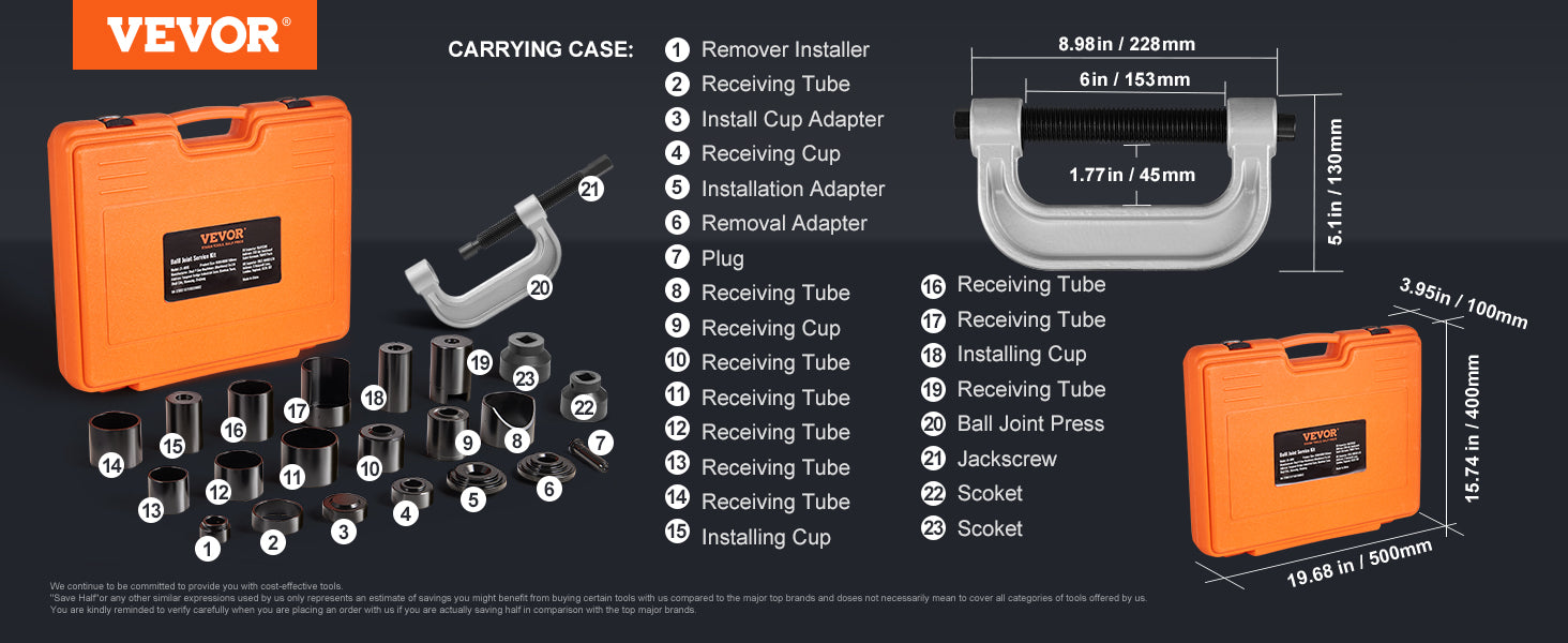 VEVOR 25 PCS Ball Joint Press Kit C-press Ball Joint Tools Steel Brake Anchor Pins Press and Removal Tools with Case