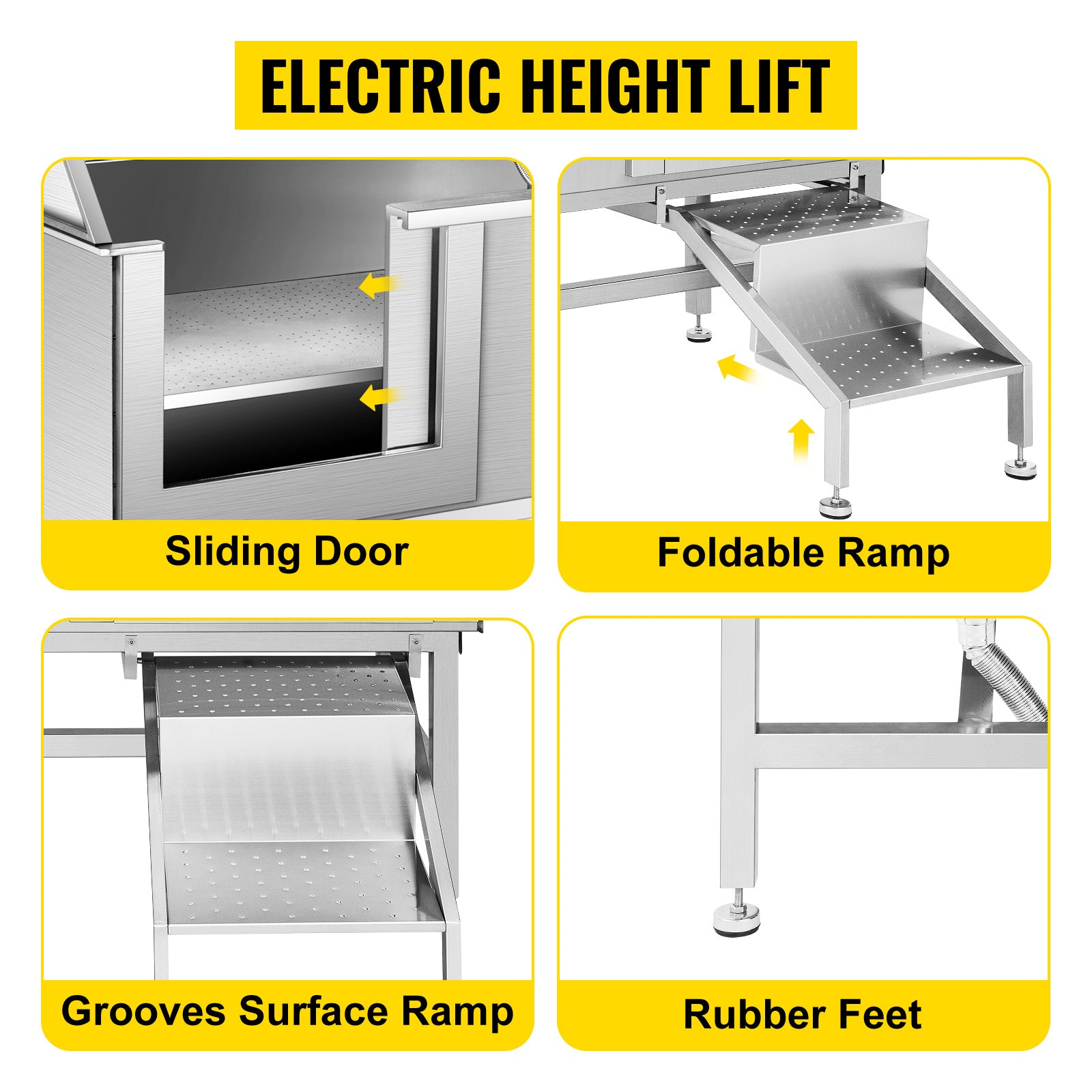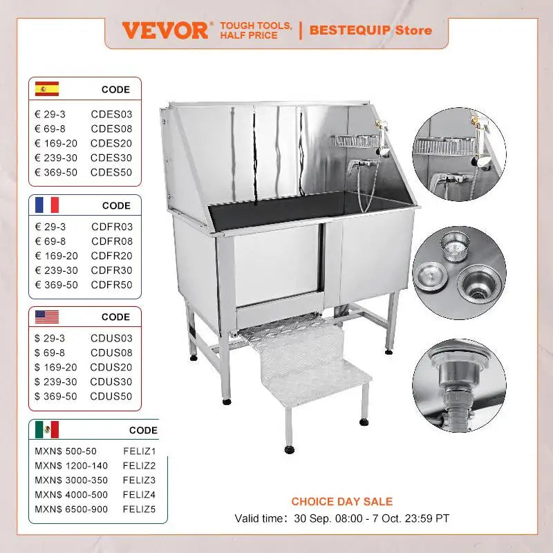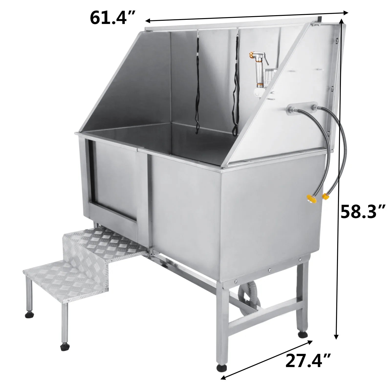 VEVOR 62 Inch Dog Grooming Tub Professional Stainless Steel Pet Dog Bath Tub With Steps Faucet & Accessories Dog Washing Station