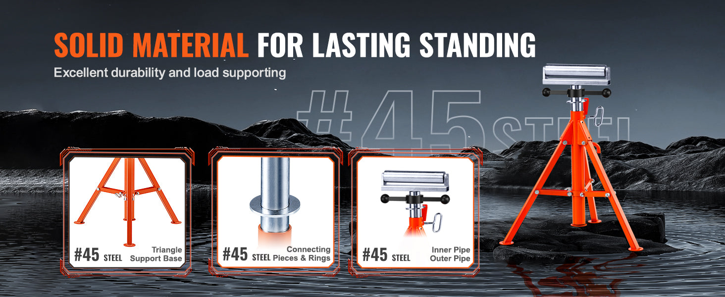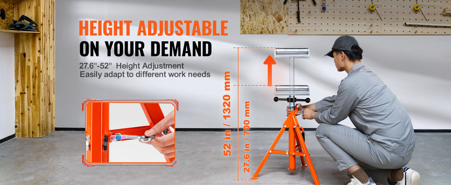 VEVOR Roller Stand Heavy Duty 2500 LBS Load Capacity 27.6"-52" Adjustable Folding Roller Support Stand for Pipes Wooden Boards