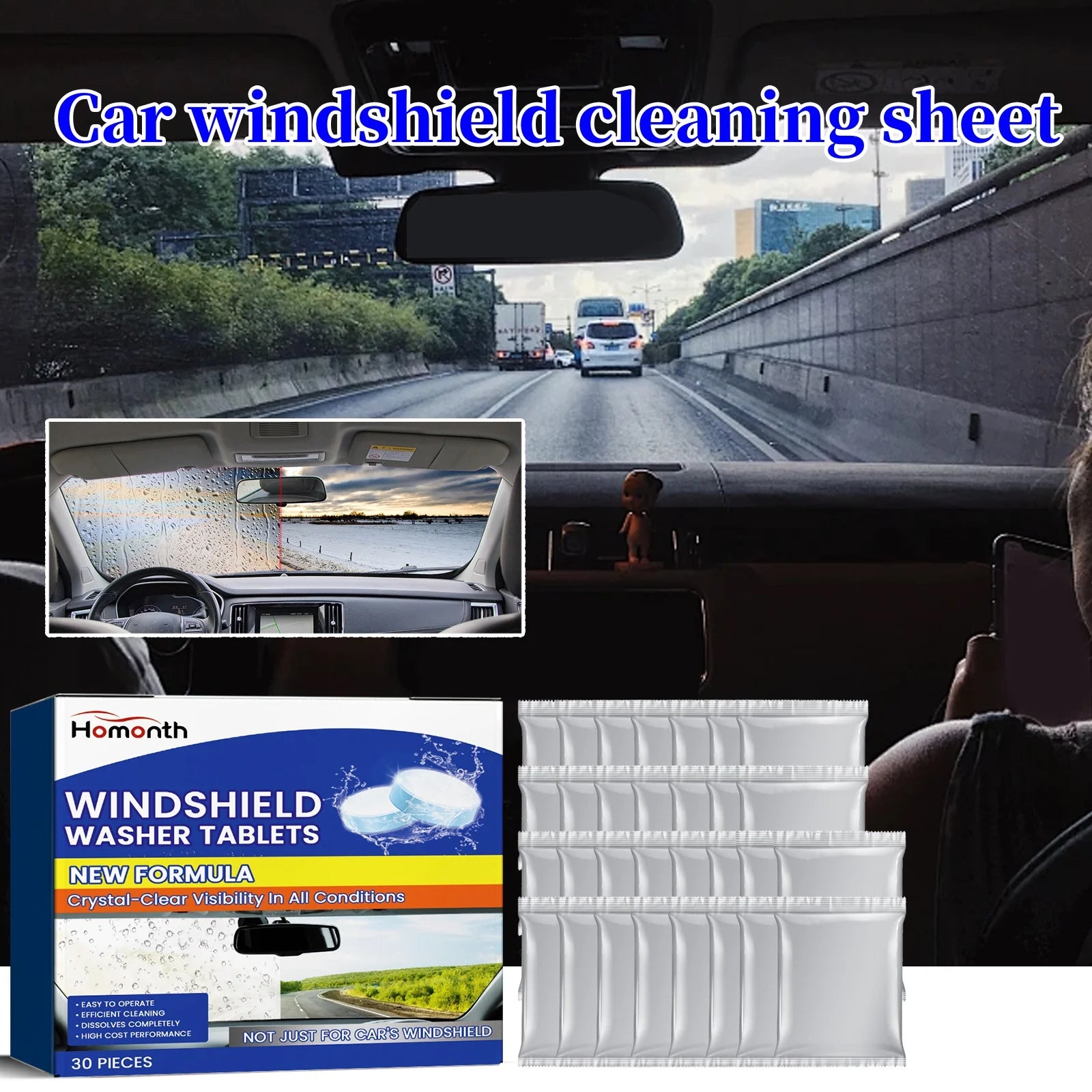 Windshield Cleaning Tablets Polishing Window Cleaning Anti-fog Windshield Wash Cleaning Tablet Multi-function Cleaning Agent
