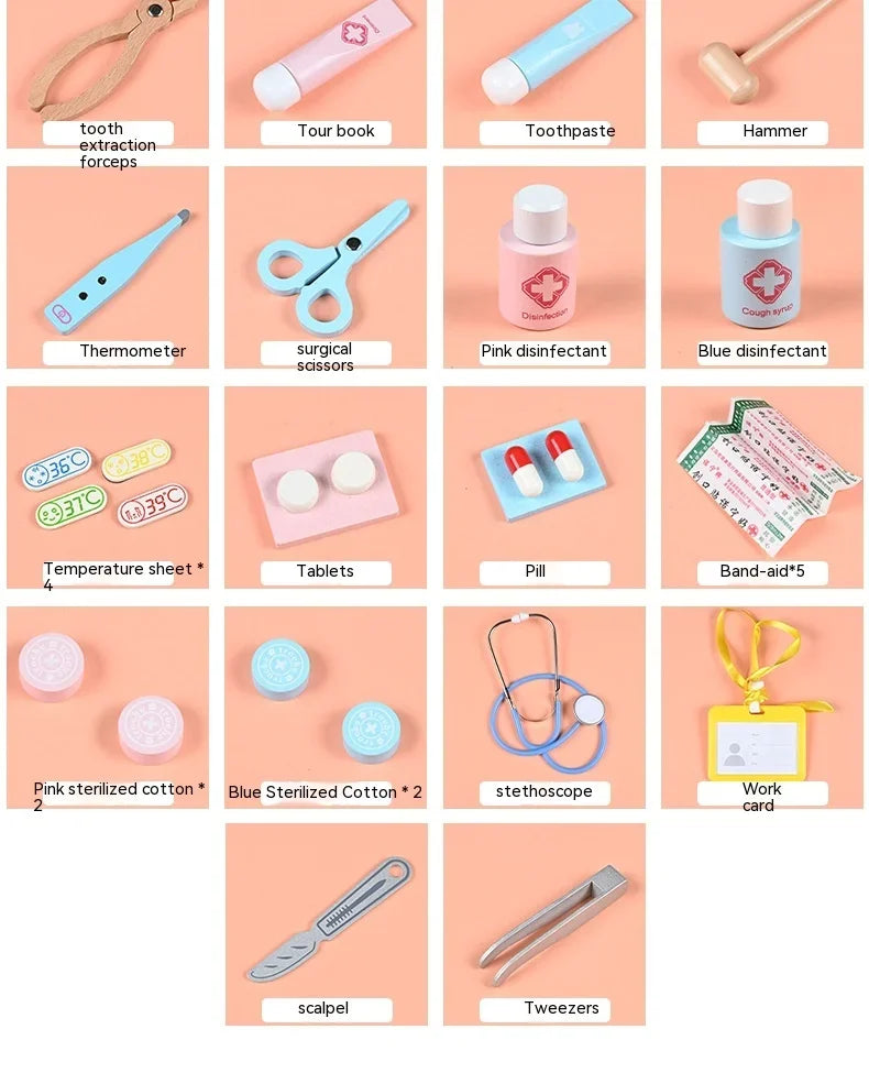 Wooden Doctor Kit For Kids,Pretend Playset For Toddlers With Medical Bag For Boys and Girls Fun Role Playing Game