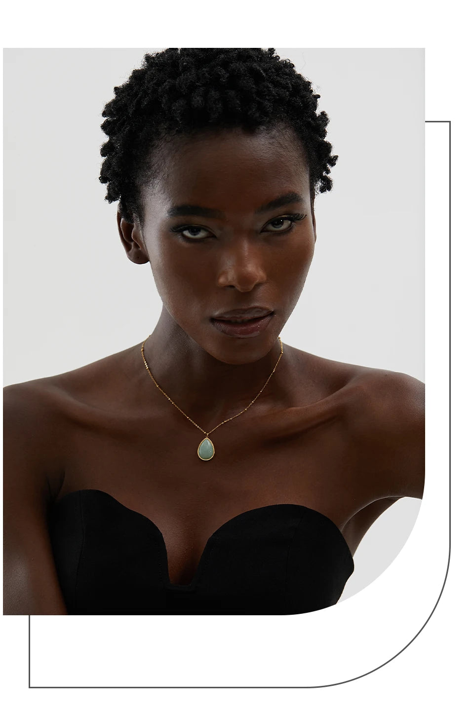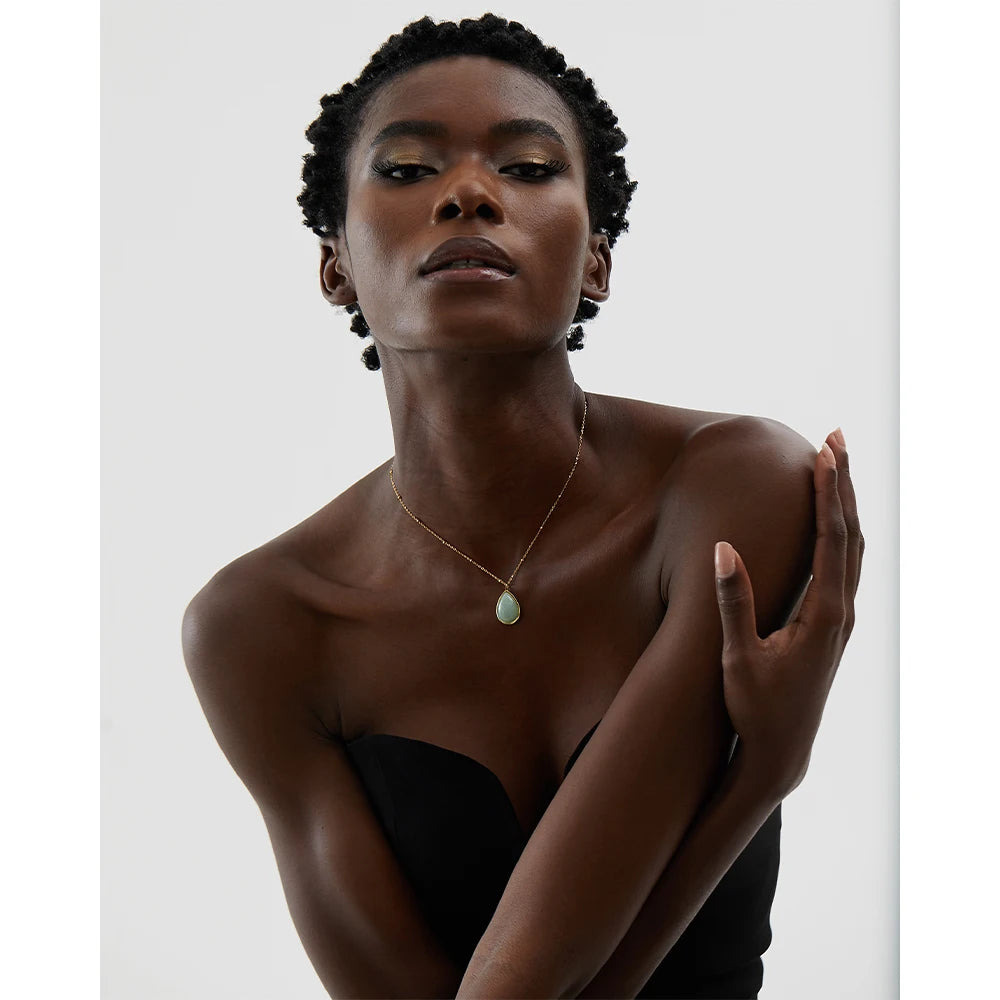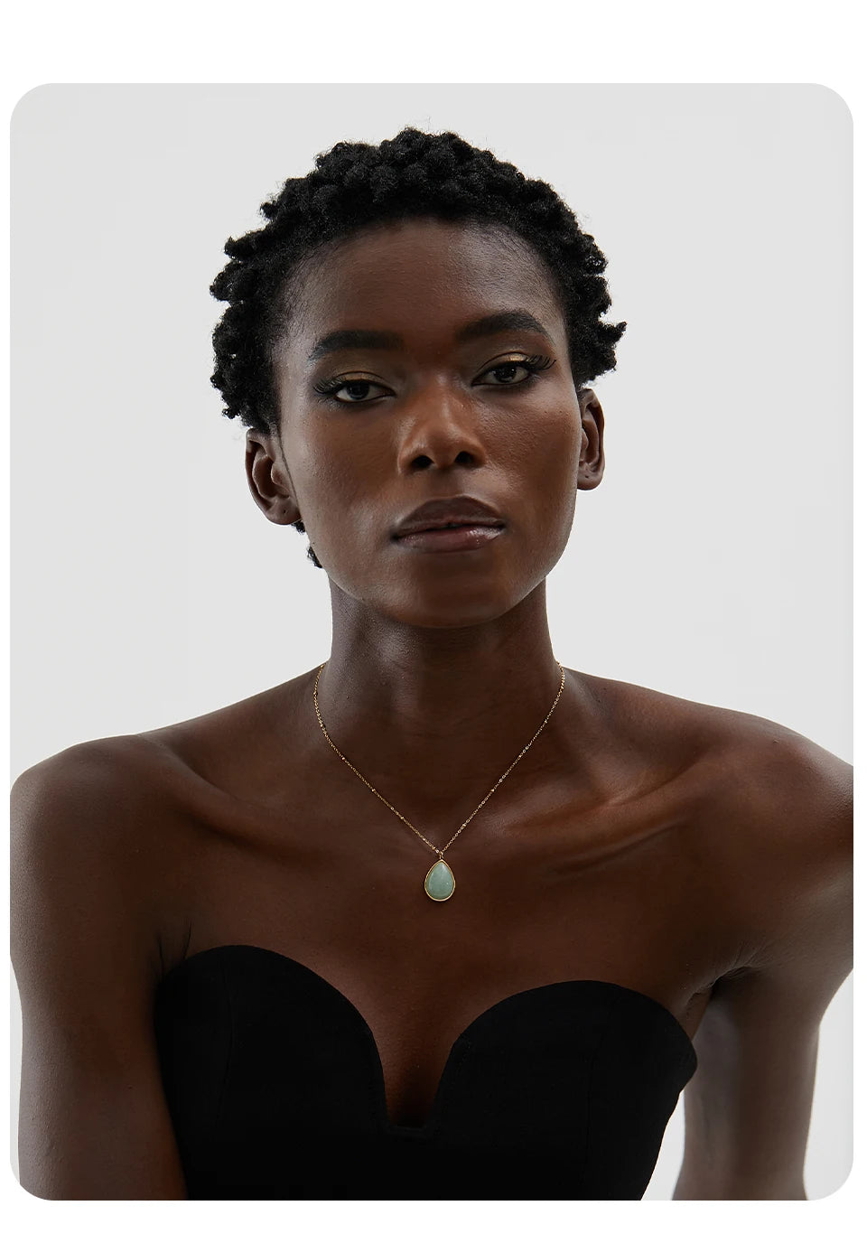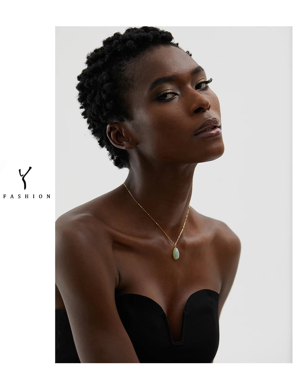Yhpup Water Drop Amethyst Green Aventurine Natural Stone Necklace Stainless Steel Fashion Charm Pendant Jewelry Tarnish Free